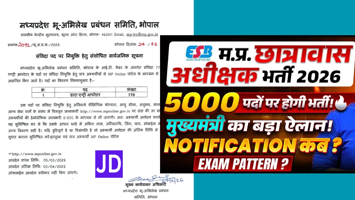मध्य प्रदेश में शिक्षा से जुड़ी व्यवस्थाओं को मजबूत बनाने के लिए छात्रावास अधीक्षक (Chatrawas Adhikshak) के पदों पर भर्ती की संभावना है। छात्रावास अधीक्षक का पद बेहद जिम्मेदारी वाला होता है, क्योंकि यह छात्रावास में रहने वाले विद्यार्थियों की देखरेख, अनुशासन, प्रबंधन और दैनिक व्यवस्था की जिम्मेदारी संभालता है। MP छात्रावास अधीक्षक भर्ती 2026 उन उम्मीदवारों के लिए महत्वपूर्ण अवसर हो सकती है जो शिक्षा प्रशासन के क्षेत्र में सरकारी नौकरी चाहते हैं।